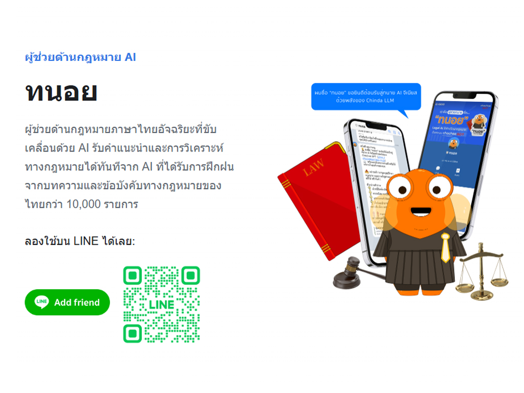 - หัวข้อ: ทนอย AI ผู้ช่วยทนาย กฎหมายไทย (Thanoy)